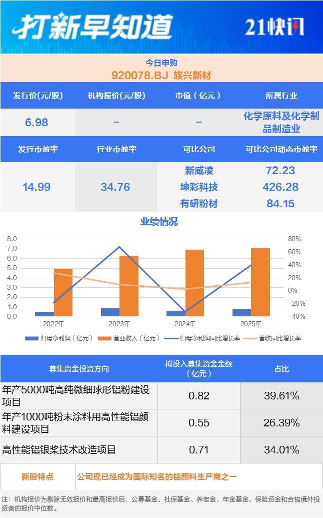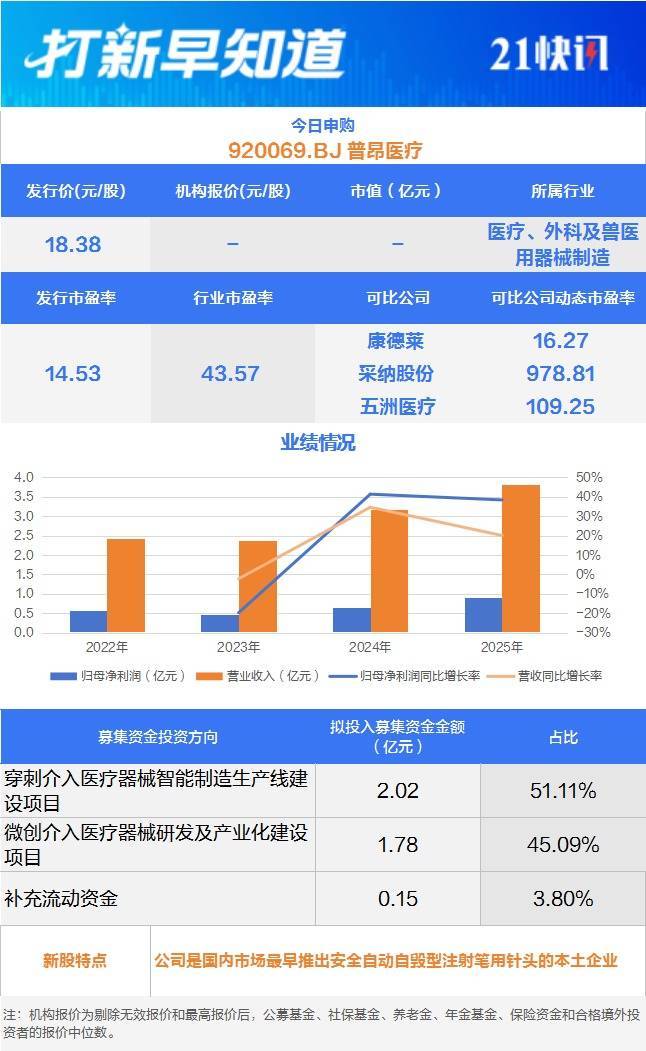3月18日,可申购北交所的普昂医疗(920069.BJ),另有一只新股上市,为北交所的族兴新材(920078.BJ)。