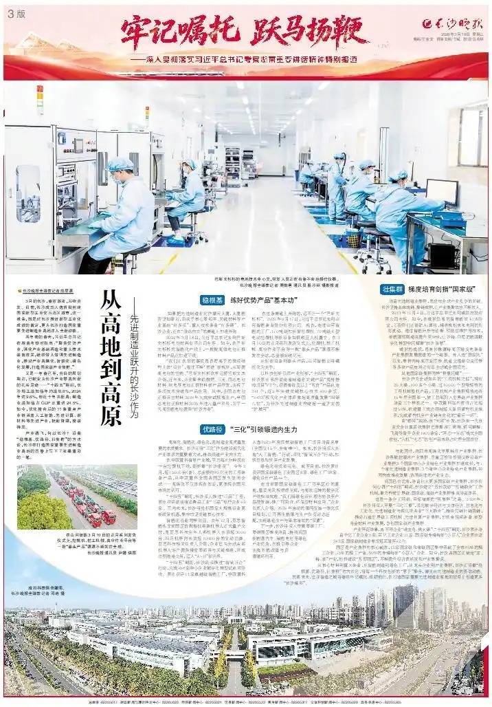 稳根基 练好优势产品“基本功”如果把先进制造业比作摩天大厦,大厦能否坚如磐石,取决于核心零部件、关键材料等产业基础“有多深”、重大技术装备“有多硬”。长沙企业,正在“修炼内功”的赛道上加速奔跑。2024年3月18日,习近平总书记来到巴斯夫杉杉电池材料有限公司考察。如今,在巴斯夫杉杉的智能化产线“我们正在做的事就是在锂离子的微观结构上做‘设计’,通过不断‘搭建’新板块,从而提高电池的性能。”巴斯夫杉杉首席运营官彭文杰介绍,近年来,企业聚焦钴酸锂、三元、固态电池材料、钠电等电池正极材料新产品开发,实现了多项技术突破和产品应用。其中,全固态电池正极活性材料2024年完成中试规模生产,半固态电池正极材料2025年进入量产阶段,为下一代高性能电池提供“长沙方案”。在这条赛道上奔跑的,远不止一个“巴斯夫杉杉”。2020年9月17日,习近平总书记来到山河智能装备股份有限公司。现在,走进山河智能的工厂,170吨级加长臂挖掘机、70吨级大型电动挖掘机等新设备如钢铁巨人般矗立。在3月10日的正月系列发货仪式上,挖掘机、桩工机械、高空作业平台等一批“拳头产品”源源不断发往全球,总金额突破亿元。从创新设备到拳头产品,山河智能正将嘱托化为实干。以科技创新引领产业创新,“十四五”期间,长沙累计承担湖南省制造业关键产品“揭榜挂帅项目”62个,获得省级及以上“五首”产品认定341个,近5年突破关键核心技术400余项。“4433”现代化产业体系撑起高质量发展“四梁八柱”,为长沙先进制造业构建起一道坚实的“护城河”。